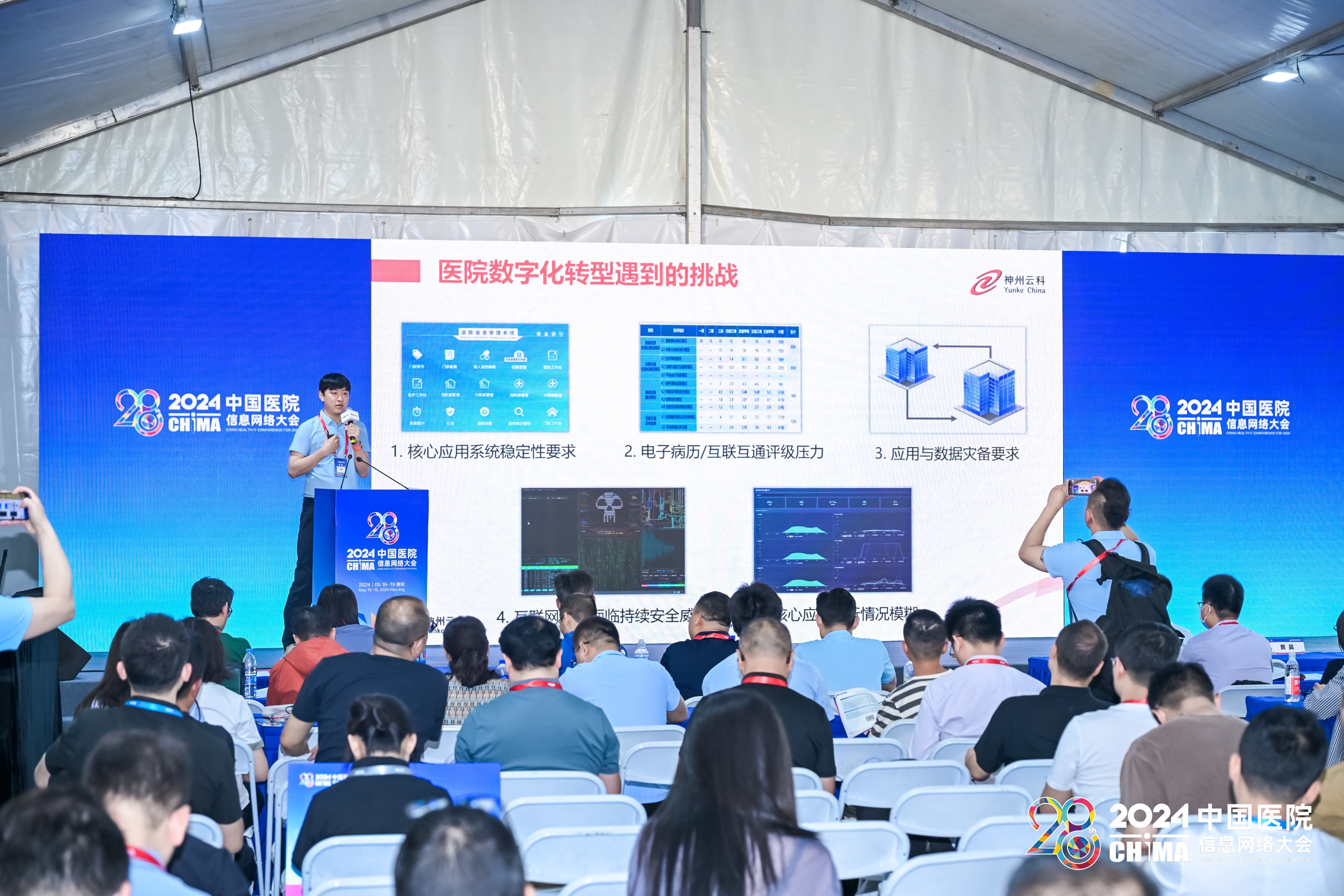 • 2024年5月17-19日,第28届中国医院网络信息大会(CHIMA2024)在南京圆满落幕。本次大会以新质生产力理论为指导,以深化应用,融合创新,用信息技术赋能医院高质量发展为主题,邀请国家卫生健康委相关司局领导、两院院士、国内外医疗卫生信息化领域知名专家学者、领军人物做主旨报告。在这场医疗信息化的年度盛会上,kaiyun开云电竞会上携其“保障医院核心系统健康无虞”主题演讲精彩亮相,成为展会的一大亮点。
